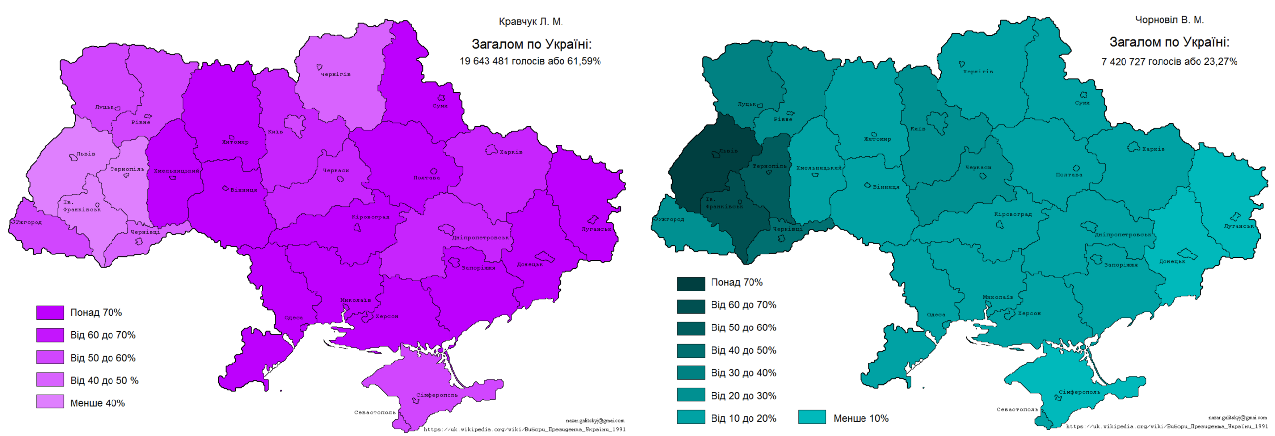 1991 год Кравчук (Ровненская область) – Черновол (Киевская область) Поляризация восток-запад только зарождается.