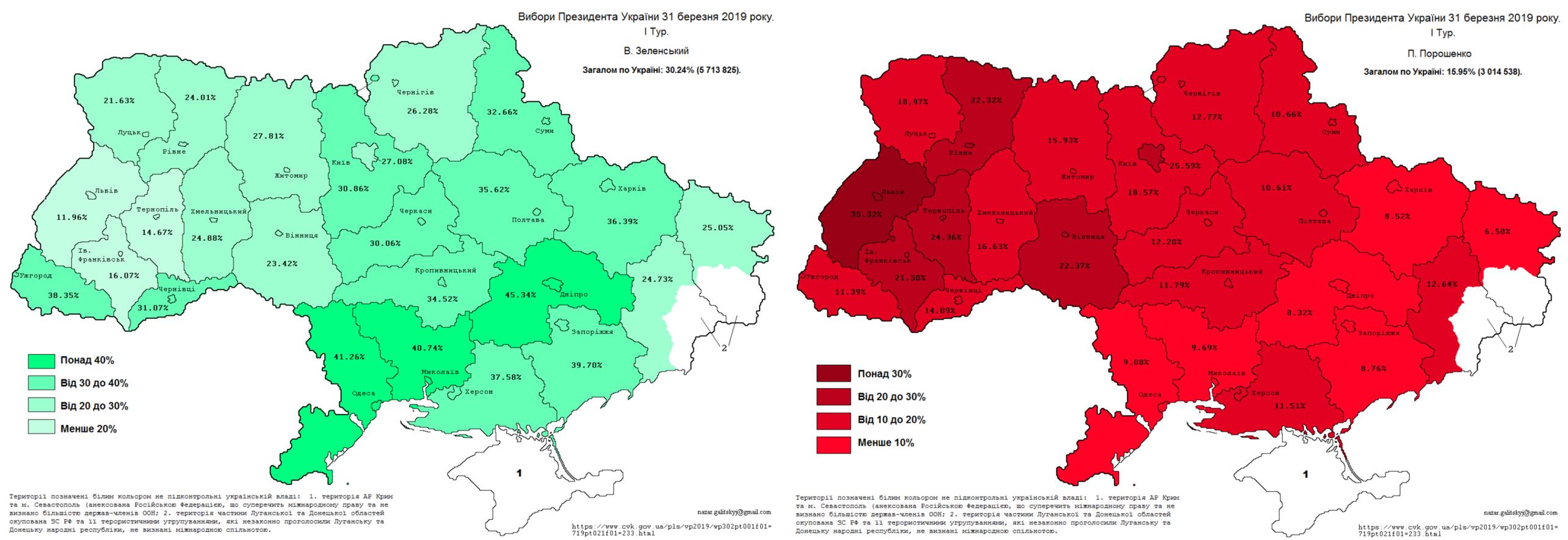 2019 год Зеленский (Кривой Рог) — Порошенко (Одесская область). Первый тур. Побеждает восток.